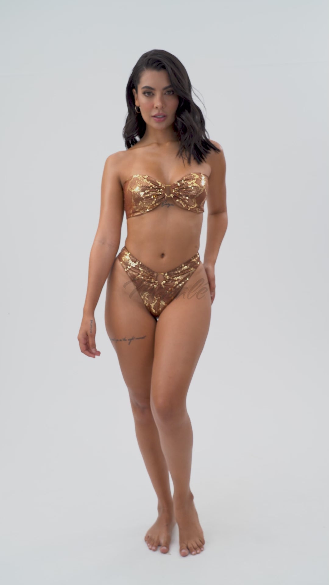 تألقي بارتداء هذه القطعة المكونة من قطعتين، والتي تتميز بطبعة ثعبان ذهبية مذهلة وتبرز بتفاصيل حلقة ذهبية.