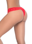 Crotchless peek a boo lace thong, low rise and scallopped waist band