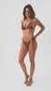 A sexy two-piece bikini designed for perfect tan lines. Featuring a colorful leopard print with lace trim details, it includes a triangle top with a cross-back and side-tie thong with micro ring detailing.